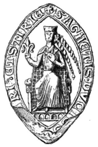 - ↑ Die Besitzungen von Agnes im heutigen Oberösterreich dürften im Wesentlichen nach dem Ende des Interregnums an die Wittelsbacher und einige Teile vielleicht auch an die Habsburger gefallen sein. Darauf hatte Agnes keinen Einfluss mehr. Berücksichtigt man allerdings, dass Friedrich sich selbst als Herr auf der Krain bezeichnete und dort politisch tätig war, überrascht es, dass er auf diese nach seiner "Ehescheidung" verzichtet haben soll. Auffallend ist jedenfalls, dass die zweite Ehe von Agnes mit dem Herzog von Kärnten erst nach dem Tod von Herzog Friedrich (II.) "dem Streitbaren" geschlossen wurde. Es wäre daher vorstellbar, dass ihre Besitzungen auf der Krain zunächst ebenfalls bei Friedrich blieben, und der Herzog von Kärnten diese nach Friedrichs Tod aufgrund der Wirren während des "Österreichischen Interregnums" an sich bringen konnte. Indem er dann noch Agnes heiratete, mag er versucht haben, seine rechtliche Position zu verbessern. Dazu würde auch passen, dass er nach dem Tod von Agnes die Großnichte von Herzog Friedrich heiratete. Auch diese Ehe war zur Absicherung von Teilen aus dem Babenberger-Besitz bestens geeignet.