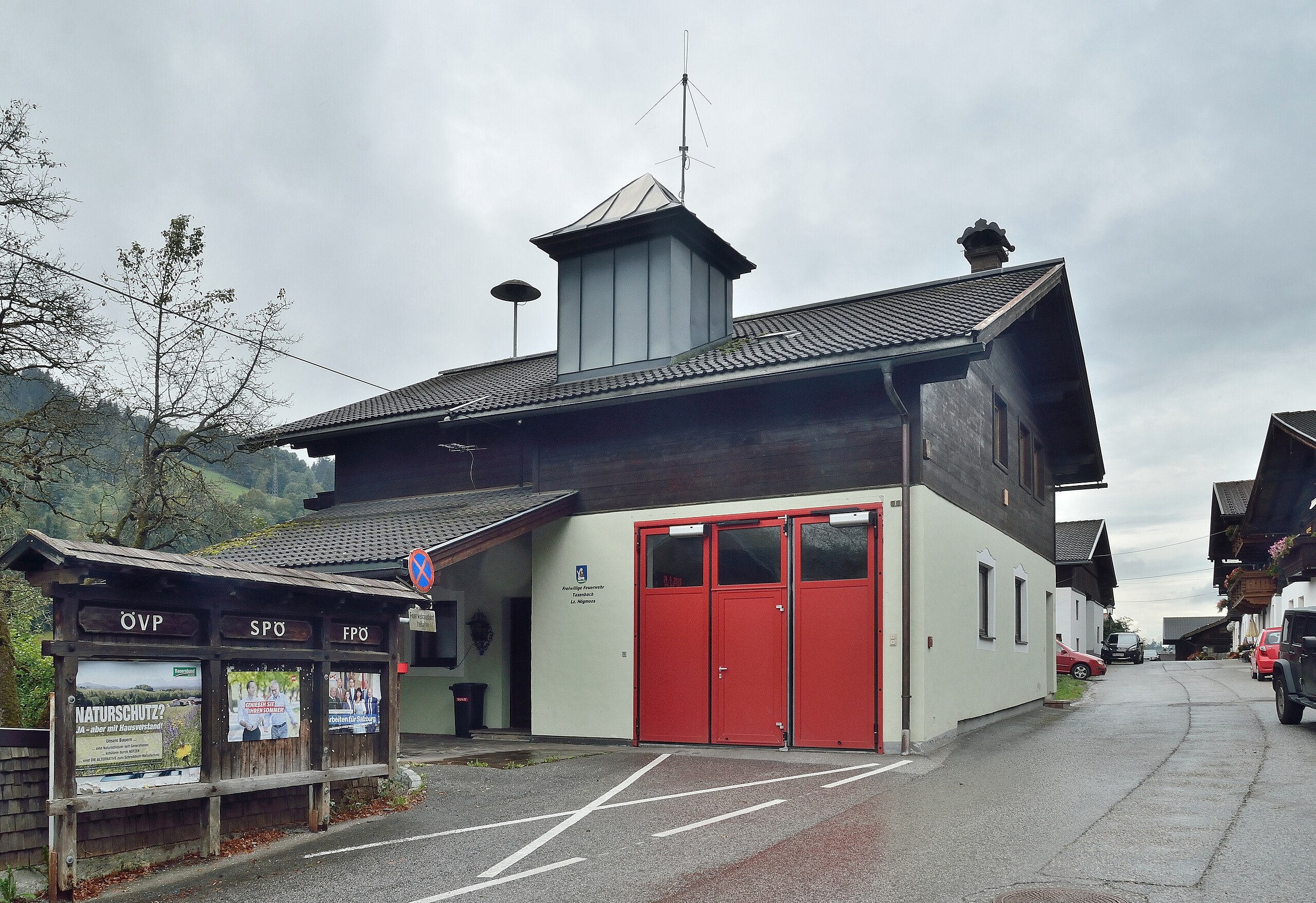 Deutsch: Rüsthaus in der Ortschaft Högmoos, der Feuerwache der FF Taxenbach in der Gemeinde Taxenbach, im Land Salzburg. |