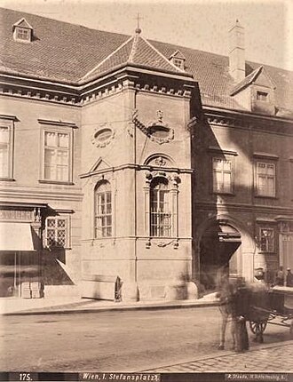 - ↑ Dom- und Diözesanarchiv der Erzdiözese Wien, Hauptcassa-Rechnungen, ab 1751, berichten vom Bau einer Hauptstiege (Puttenstiege) durch den erzbischöflichen Baumeister Mathias Franziskus Gerl, die ausgearbeiteten Stiegenstufen aus Kaiserstein lieferte Steinmetzmeister Johann Gehmacher aus Kaisersteinbruch, sein Vater.