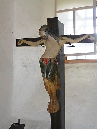 - ↑ Bei den Kreuzigungsdarstellung finden sich meistens nur drei Nägel, mit denen die Christusfigur am Kreuz befestigt ist. Zwei Nägel stecken in den Handflächen der beiden Arme, ein dritter Nägel in den Fußfesseln, die übereinander geschlagen sind. Beim "Vier-Nagel-Typus" sind dagegen die beiden Fußfesseln nebeneinander und jeweils mit einem eigenen Nagel befestigt.