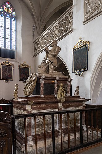 An Hans Georg (III.) von Kuefstein erinnert sein beeindruckender Kenotaph, der noch heute in der Wallfahrtskirche Maria Laach am Jauerling besichtigt werden kann.[5] Es handelt sich um ein Werk von Alexander Colin († 1612), das dieser zwischen 1604 und 1607 im Auftrag der Söhne von Hans Georg für diesen schuf.
