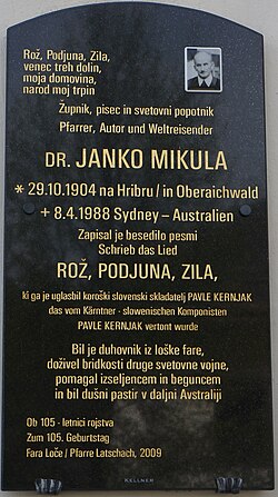 In Erinnerung ist der Tex zu dem slowischen Lied Rož, Podjuna, Zila, das von Pavle Kernjak, einem Kärntner-slowenischen Komponisten vertont wurde.