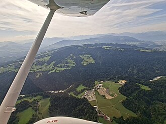 47.4917669.777518 zwischen Kennelbach und Bregenz-Fluh und von hier wieder über Gemeindegebiet von Bregenz rund 2500 Meter bis zur Gemeindegrenze von Langen (beim Wirtatobelbach)