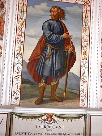 Ludwig "der Brandenburger" herrschte 1323/1333-1351[A 2] über Brandenburg[5], seit 1342 über die Grafschaft Tirol und seit 1347 gemeinsam mit seinen Brüdern und Halbbrüdern über Teile des Herzogtums Bayern (Oberbayern). 1349 wurde der Teilungsvertrag von Landsberg geschlossen, der Ludwig, gemeinsam mit seinen Halbbrüdern Ludwig "dem Römer" und Otto (V.) "dem Faulen" († 1379) die Herrschaft über Oberbayern sicherte.[8] 1351 verzichtete Ludwig im Vertrag von Luckau unter Behalt der Kurwürde auf die Markgrafschaft Brandenburg zugunsten von Ludwig "dem Römer" und Otto "dem Faulen" und übernahm dafür die alleinige Herrschaft über Oberbayern.[10] Als Kurfürst von Brandenburg war er 1338 wesentlich am Kurverein von Rhense beteiligt. Durch die "Goldene Bulle" (1356) wurde ihm diese aberkannt.