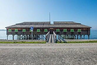 5. Gemäß: Nostalgiebad „Mili“ – Baden wie zu Kaisers Zeiten, Webseite: vorarlberg.orf.at vom 23. Oktober 2025, sollen es 98 Pfähle sein.
