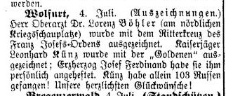 - Martin Böhler, 30. Dez 1895, Wolfurt, ledig, Sticker, gefallen am 2. Jun 1915, Kopfschuss bei Lutkovice in Galizien