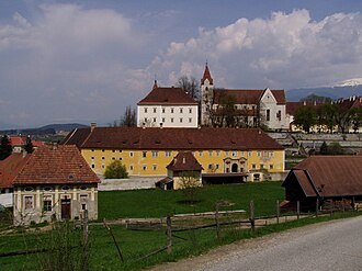 - ↑ Die Grafen von Spanheim oder Sponheim waren eine in "Rheinfranken" ansässiges Dynastenfamilie, welche sich nach der Burg Spanheim (heute in Deutschland) benannte. Graf Siegfried (I.) von Spanheim, der sich in der ersten Hälfte des 11. Jahrhunderts im Pustertal niederließ, begründete gemeinsam mit seinem Bruder Friedrich eine "Kärntner Linie" seiner Familie, welcher 1122 die Herzogswürde für das Herzogtum Kärnten verliehen wurde. Den Titel eines Herzogs von Kärnten führte sie bis 1279, obwohl ihre tatsächliche Herrschaft um 1269 dort endete. Vgl. Marijan Anton Kerzan: Richardis von Lavant. S. 5