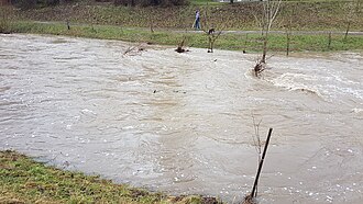 24. Dezember 2018 - Der Liesingbach führt im Bereich Rodaun Hochwasser