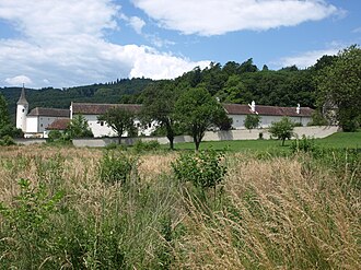 Das südlich der Donau gelegene Schloss Großweichselbach befindet sich am Südhang des Hiesberges.[1] Heute ist es ein Teil der Gemeinde St. Leonhard am Forst.