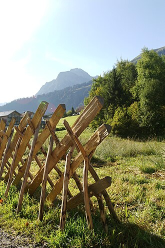 Der Schrankzaun (auch: Lattazaun, Lattazu, Knüppelzaun, Schräg- bzw. Schrägezaun, Scharzaun, Graggenzaun, Schrag(g)azaun bzw. Schragazu, Schratthag, Scheiazaun, Gischenzaun, Walserzaun, Sarner Bettlzaun oder Lechtaler Spaltzaun etc. genannt) ist ein stabiler Weidezaun vollständig aus Holz, der vorwiegend in Wald- und Alpgebieten errichtet wurde bzw. wird.[1][2][3][4]