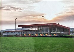 Nach der Gründung des Vereins im Jahr 1993 gab es noch keinen eigenen Sportplatz, deshalb musste der Verein in den ersten drei Jahren der Vereinsgeschichte seine Spiele am Sportplatz des ASK Eichkogel austragen. Der Bau der alten Sportanlage in der Guntramsdorfer Straße 26 begann im Oktober 1995 und dauerte insgesamt eineinhalb Jahre. Der Fußballplatz wurde am 14. März 1997 eröffnet und stellte von da an die Heimstätte des FC Laxenburg. [6]