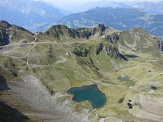 47.063619.979993 unterhalb des Hochjoch (2520 m ü. A.) bzw. unterhalb des Kreuzjochs (2398 m ü. A.). Die Wormser Hütte ist etwa 370 Meter westlich entfernt, die Bergstation der Hochjochbahn und Zamangbahn bzw. Talstation der Sennigratbahn im Nordwesten rund 1800 Meter Luftlinie. Die Bergstation der Kreuzjoch-Panoramabahn ist im Südwesten rund 450 Meter Luftlinie entfernt. Im Süden ist die Bergstation der Hochalpilabahn rund 400 Meter Luftlinie enfernt.