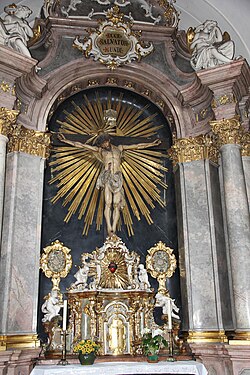In der Folge wurde das Kreuz am Hauptaltar der damaligen Trinitarierkirche installiert.