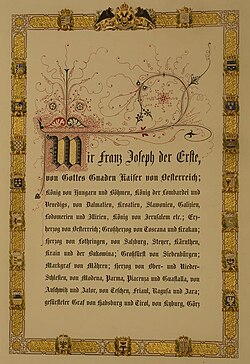 - Am 26. Februar wird mit dem Februarpatent durch Kaiser Franz-Joseph die Gesetzgebung zwischen dem Kaiser und den zwei neugeschaffenen Häusern des Reichsrates aufgeteilt.