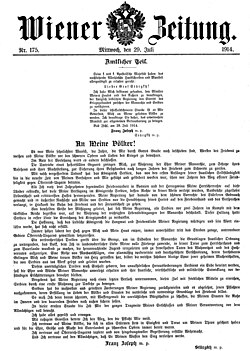 - 28. Juli: In seiner Villa in Bad Ischl erklärt Kaiser Franz Joseph Serbien den Krieg. Verlautbart wird die Proklamation am Folgetag in der Wiener Zeitung, bekannt unter An meine Völker!.