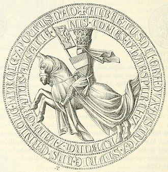 - Durch seine Ehe mit Johanna von Pfirt kam die Grafschaft Pfirt im Elsaß und mit dieser westliche Sundgau bis zur Burgundischen Pforte unter die Herrschaft seiner Familie.[2] Diese Teil des Elsass konnte von den Habsburgern mehrere Jahrhunderte gehalten werden.