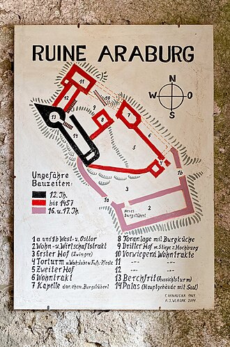 Überregionale Aspekte dieses Themas werden auch in der Wikipedia unter dem Titel Burgruine Araburg behandelt.