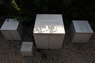 - ↑ Brandkatastrophe 1918: Mahnmal für Frieden errichtet in den NÖN von 6. Oktober 2018 abgerufen am 26. April 2020