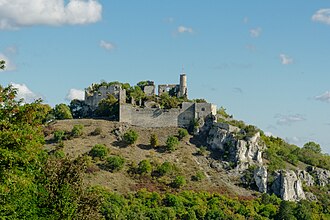 Die Burgruine Falkenstein ist heute Teil der gleichnamigen Gemeinde. Sie liegt auf einer Kalkklippe, der auf allen Seiten steil abfällt.[1]