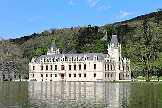 Das gleichnamige Schloss ist nicht identisch mit der Burg. Es war ursprünglich ein zur Burg gehöriger Meierhof, der erst 1727-1730 zum Schloss ausgebaut wurde. Als dieses 1831 von Erzherzog Rainer gekauft wurde, ließ dessen gleichnamiger Sohn es 1856–1884 nach Plänen des Architekten Theophil Hansen im Stil der englischen Gotik renovieren. 1943 verkauften seine Erben das Schloss an die "Erste österreichische Sparkasse", 1963 kam es in den Besitz der Wiener Wirtschaftskammer. Heute dient das Schloss als Seminarhotel und wird außerdem für Hochzeitsfeiern genutzt.[4]