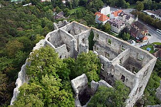 - Vom Bergfried aus, der als der älteste Teil der Burg gilt und sich seit dem 12. Jahrhundert erhalten hat, bietet sich ein herrlicher Blick auf Baden und das Helenental.[7]