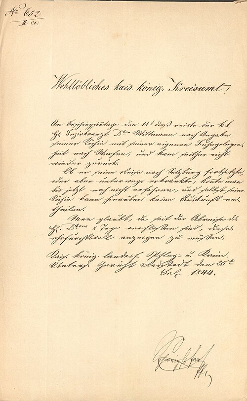 | aktuell | 19:23, 23. Mär. 2024 | 990 × 1.610 (185 KB) | commons>Karl Gruber | {{Information |Description={{de|Scans eines Schreibens an das Kreisamt bzgl. Dr. Wittmann, Kreisarzt}} |Source=https://www.sn.at/wiki/Datei:1844_Wittmann_ist_verschwunden.jpg |Date=1844 |Author={{unknown}} |Permission= |other_versions= }} |