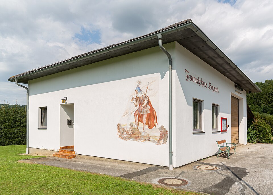 Deutsch: Gebäude der Feuerwehr in Bergwerk, Gemeinde Mariasdorf, Burgenland, Österreich. Die Feuerwehr löste sich 2020 auf und schloss sich der Feuerwehr Neustift bei Schlaining an.