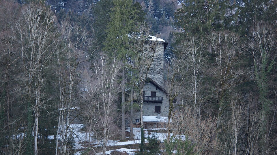 Deutsch: Burg Rosenegg auf einem Bergsporn südlich von Bürs. Bestehend aus dem fünfgeschoßigen, quadratischen Bergfried und einer Umfassungsmauer. Gebaut mitte des 13. Jahrhunderts, mehrfach umgestaltet bzw. wieder aufgebaut. Die Ringmauer stammt vom letzten Umbau im Jahr 1939, bei dem ältere neugotische Formenelemente wieder entfernt wurden. |