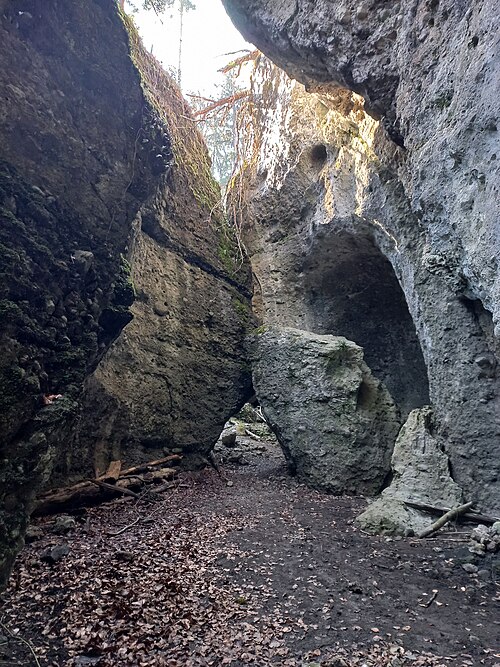 Deutsch: Kuhloch (Doline und Klamm) in der Gemeinde Bürs, Vorarlberg, Österreich.