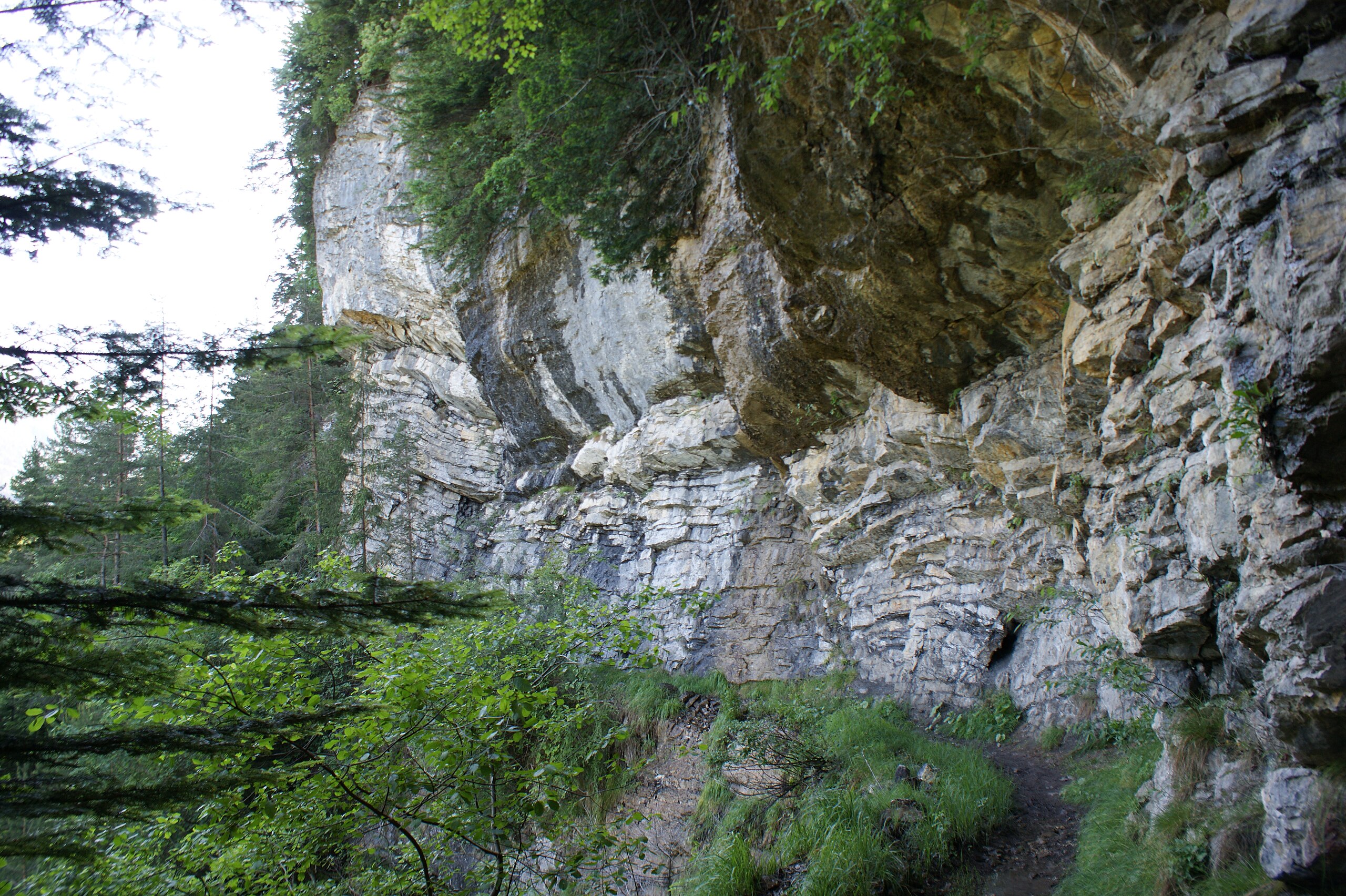 Deutsch: Der Masellaweg (alpiner Wanderweg) verläuft auf der ganzen Länge auf Gemeindegebiet von Zwischenwasser, Ortsteil Dafins auf der Schattenseite des Frödischtals.