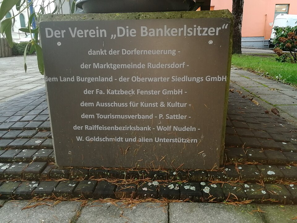 Deutsch: Danksagung des Bankerlsitzervereins aus Rudersdorf für die Unterstützung zur Errichtung des Denkmals "Bankerlsitzer", das den alten Bauernstand repräsentiert. |