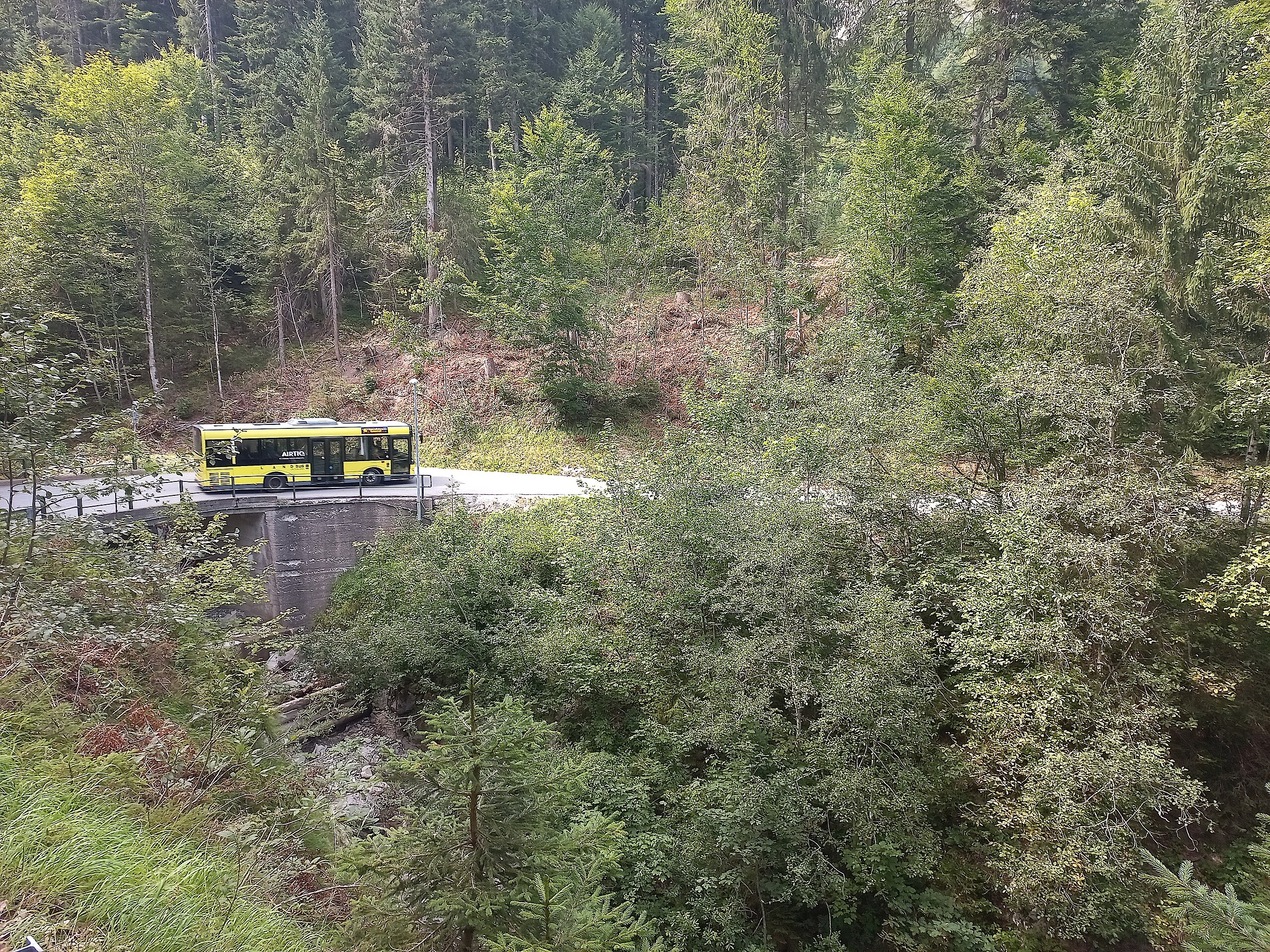 Français : Autobus sur la Ebniterstrasse à Heumöser dans la municipalité de Dornbirn dans le Vorarlberg, en Autriche. Sur le chemin de Heumöser à Ebnit village. |