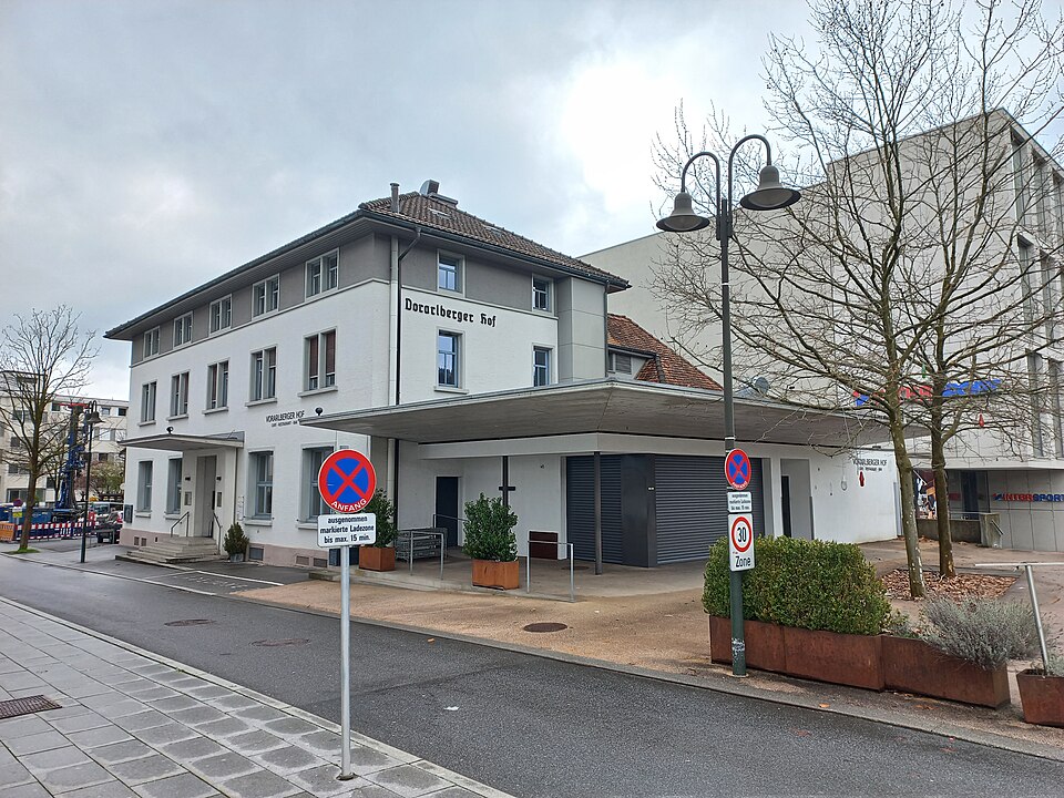 English: The Vorarlberger Hof is a building in Dornbirn, Vorarlberg, Austria, which owns by the Club (organization) "Arbeiterheim" in Dornbirn and has been used for the social democratic movement since 1919.