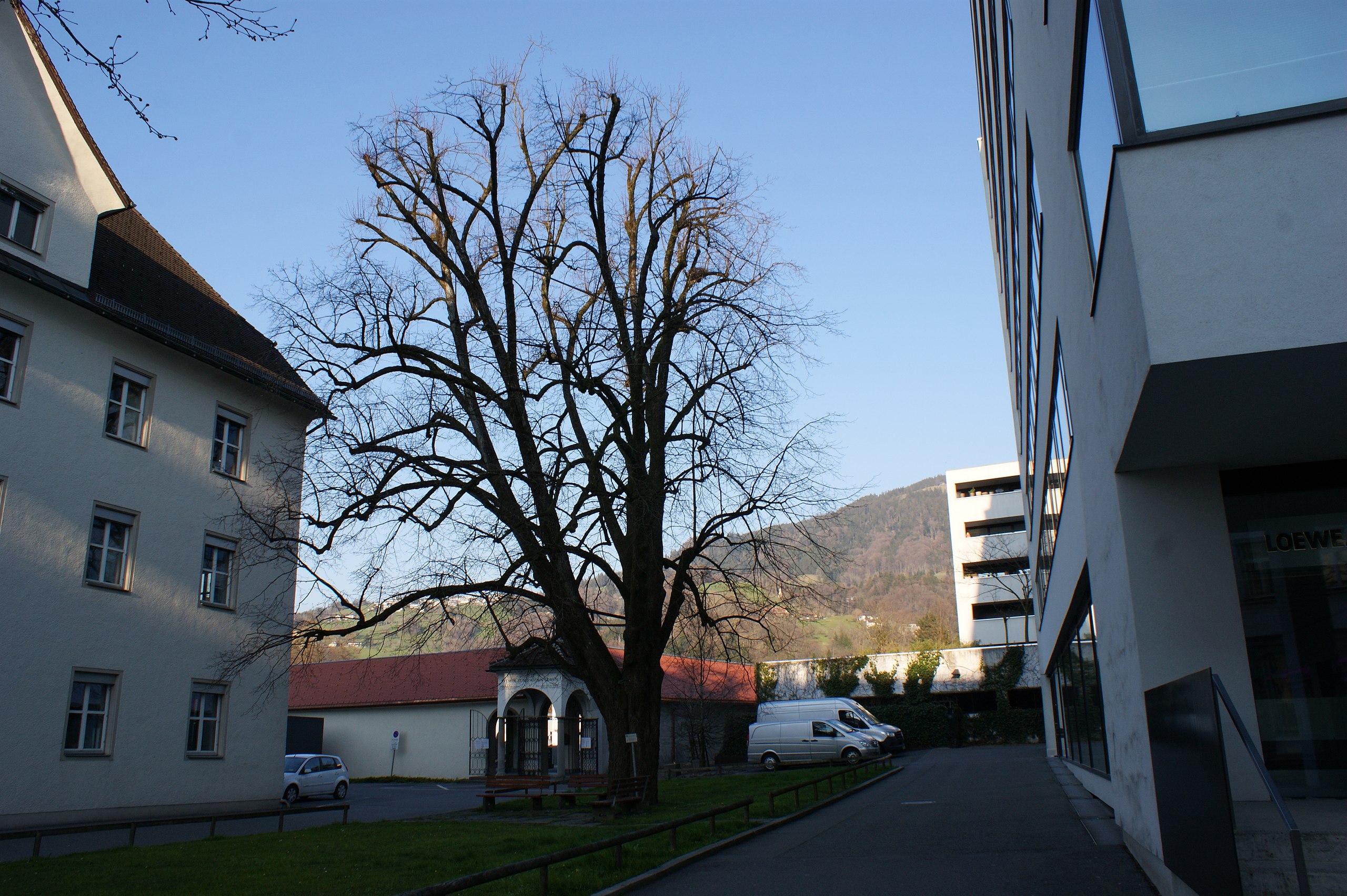 Deutsch: Naturdenkmal Linde (Tilia sp.) am Rathausplatz in Dornbirn, Vorarlber, Österreich.