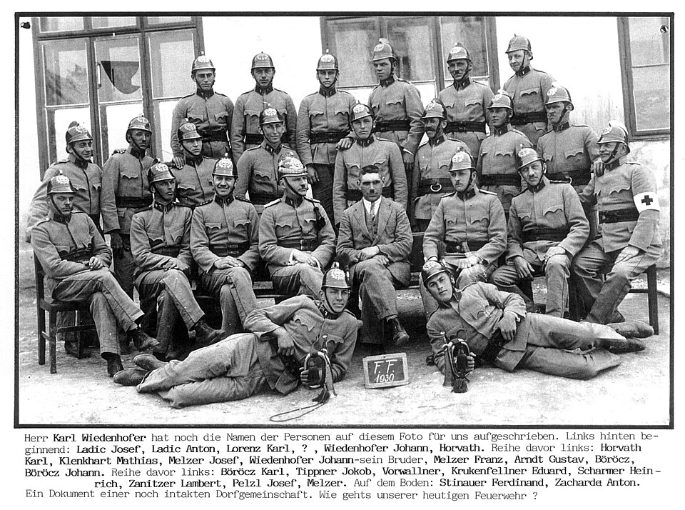 | aktuell | 06:59, 21. Jun. 2024 | 2.983 × 2.219 (2,46 MB) | commons>Helmuth Furch | {{Information |Description=Freiwillige Feuerwehr Kaisersteinbruch 1930, 1939 wurde der Ort zwangsweise abgesiedelt, das Kriegsgefangenenlager Stalag XVII A errichtet, der Ort bwurde aufgelöst und zerstört. Die Feuerwehr wurde 1968 durch Alfred Burits wiedergegründet. |Source=Der Altkaisersteinbrucher Johann Wiedenhofer übergab sein Exemplar des Fotos 1999 dem Museum Kaisersteinbruch |Date=Foto von 1930 |Author=NN Feuerwehr |Permission= |other_versions= }} |