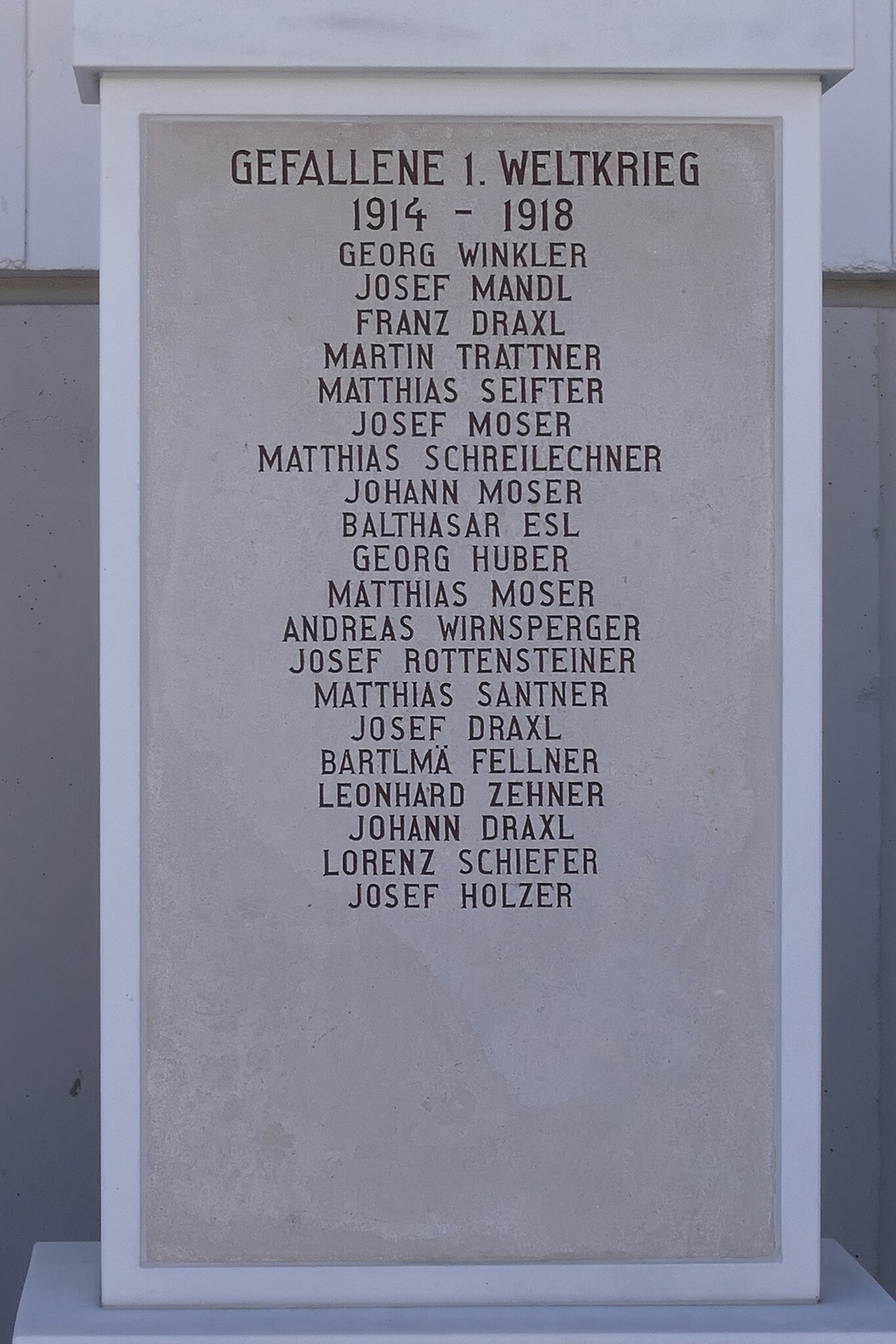 Tafel der Gefallenen des 1. Weltkrieges des Kriegerdenkmal in Göriach bei Tamsweg, befindet sich bei Filialkirche Göriach