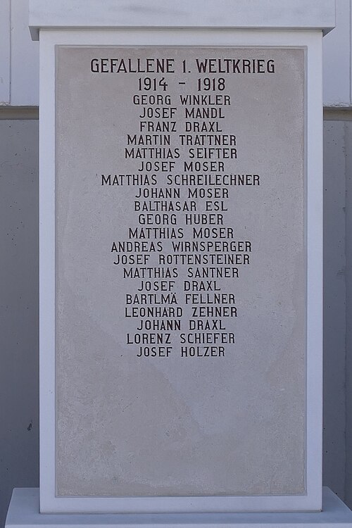 Deutsch: Tafel der Gefallenen des 1. Weltkrieges des Kriegerdenkmal in Göriach bei Tamsweg, befindet sich bei Filialkirche Göriach |