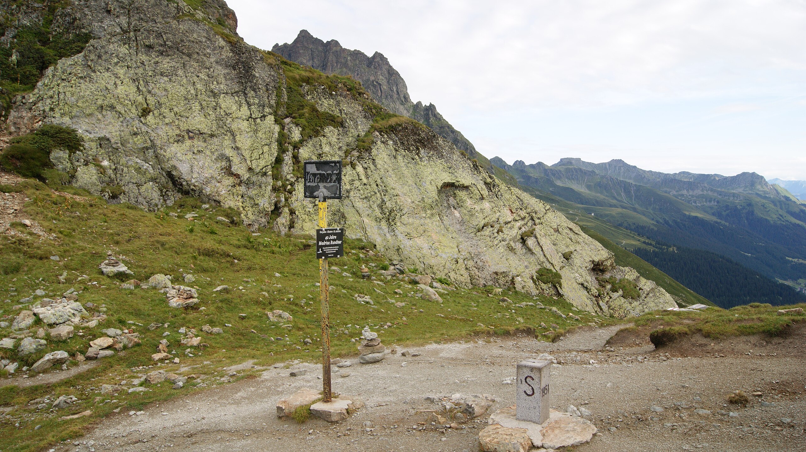 English: Schlappiner Joch - border in the municipality Gargellen in VorarlbergAustria and the community Klosters (Schlappin) in Graubünden (Switzerland)