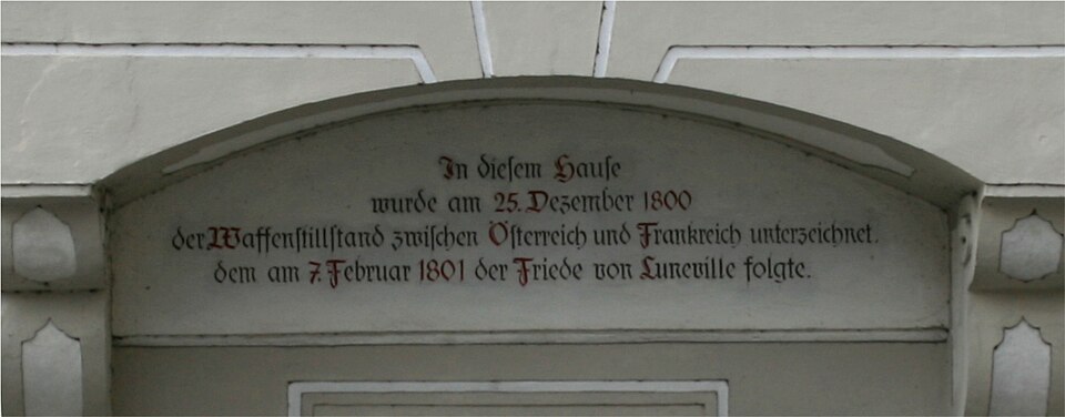 | aktuell | 19:03, 28. Dez. 2009 | 1.220 × 478 (274 KB) | commons>Lewenstein | {{Information |Description={{de|1=Diese Inschrift erinnert an den in der heutigen Steyrer Löwenapotheke unterzeichneten Friedenvertrag von Lunéville}} |Source={{own}} |Author=Lewenstein |Date=2009-07-21 |Permission= |other_versions= |