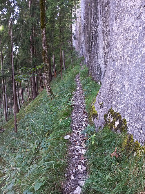 English: The Kapfweg is an alpine path, which leads from Meschach (Götzis, Vorarlberg, Austria) to the plot Spalla (Götzis). The way leads directly to the Witeleloch (Elisabethcave). |