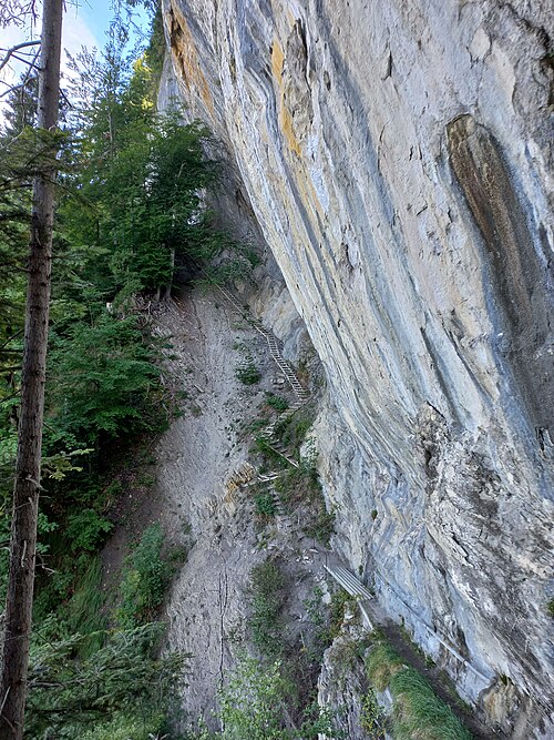 Deutsch: Der Kapfweg ist ein alpiner Steig, der von Meschach (Götzis, Vorarlberg, Österreich) aus zur Parzelle Spalla (Götzis) führt. Der Weg führt direkt am Witeleloch (Elisabethhöhle) vorbei.