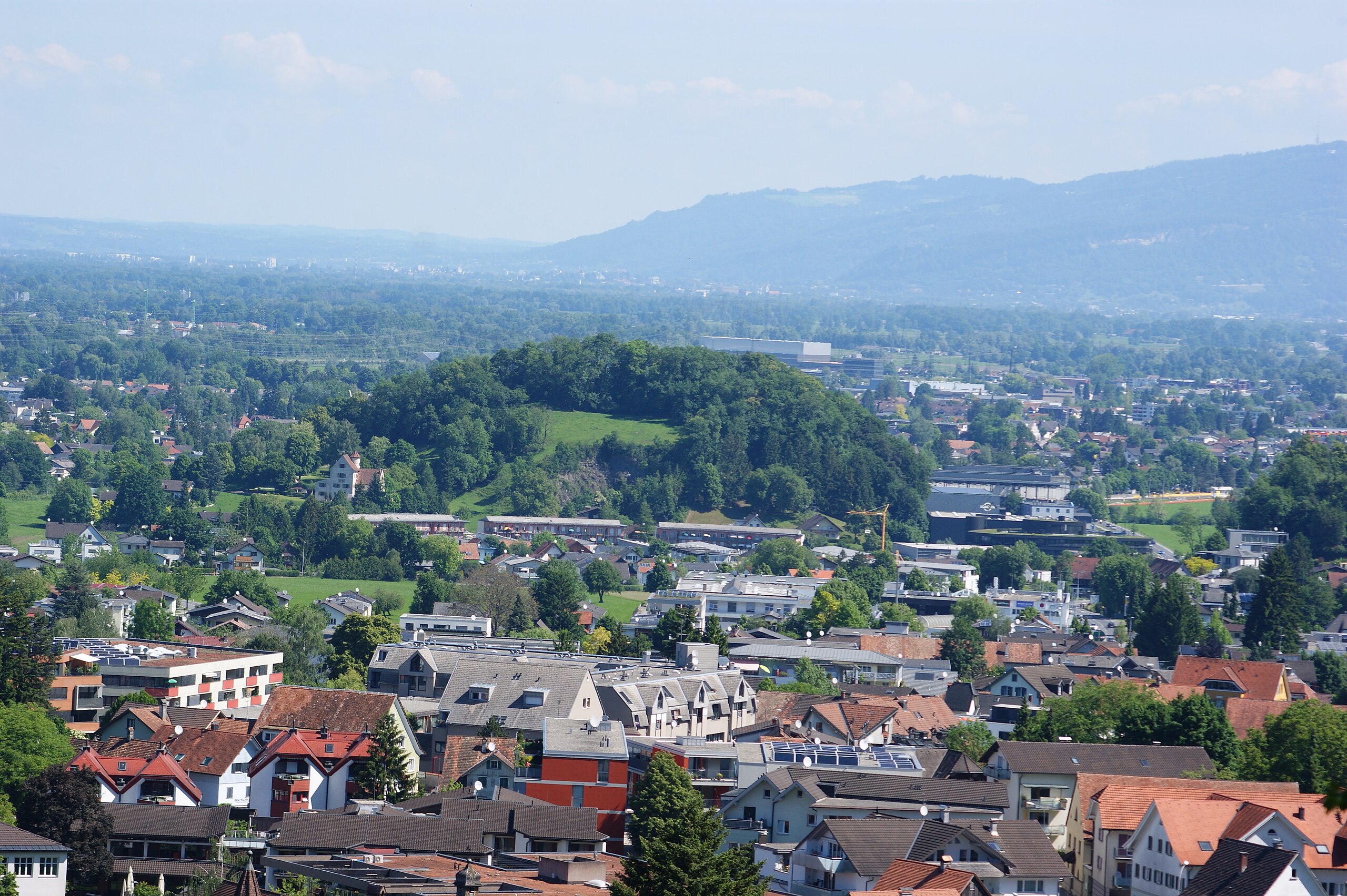 Français : Sonderberg, sur une "montagne insulaire" dans la municipalité de Götzis, Vorarlberg, Autriche. Vue depuis le château de Neu-Montfort. |