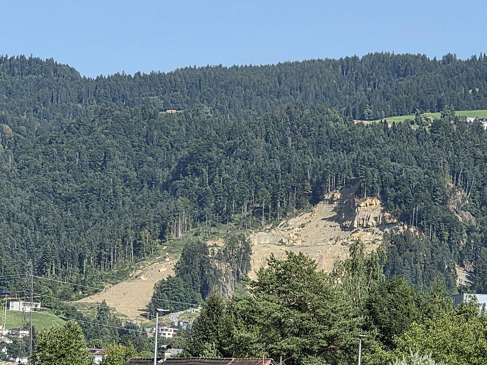 Deutsch: Hangrutsch in Hörbranz (Hochreute), Vorarlberg, Österreich. Blick von der Autobahn A14