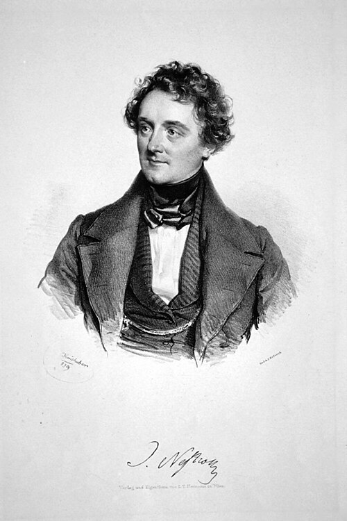 | aktuell | 06:09, 17. Mär. 2008 | 999 × 1.499 (201 KB) | commons>Tohma | {{Information |Description={{de|Johann Nestroy, Lithographie von Josef Kriehuber, 1839}} |Source=Eigenes Foto einer Originallithographie |Date=1839 |Author=Joseph Kriehuber, Foto: [[:de:User:Peter Geymaye |