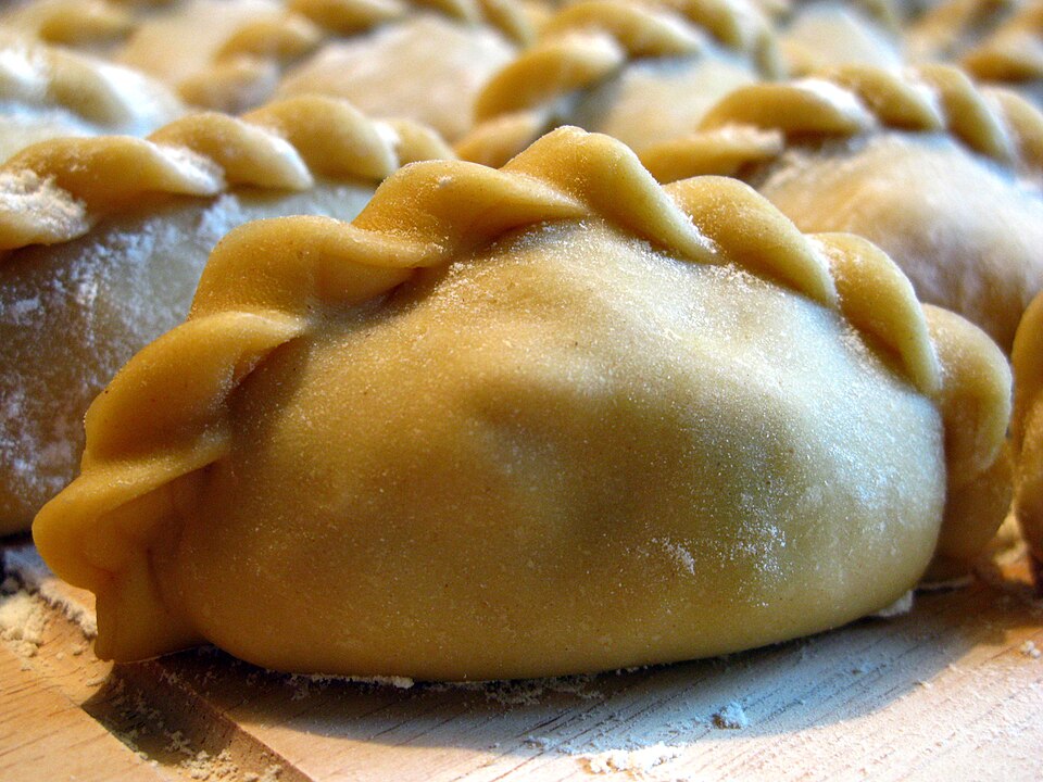 Deutsch: Handgekrendelte Kärntner Nudel hier mit Selchfleischfülle in der für die Nockberge typischen Größe, gekocht am Millstätter Berg beim Millstätter See in Kärnten / Österreich / Europäische Union. |