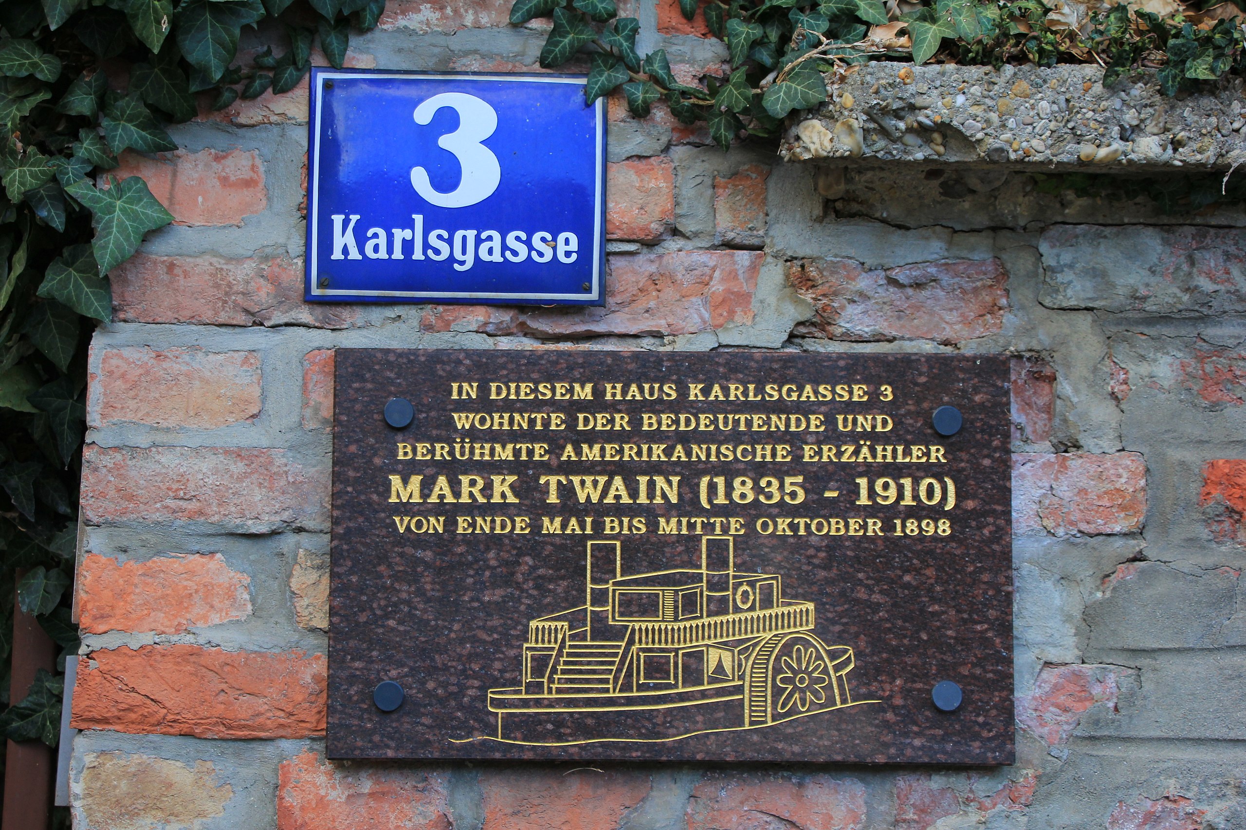 Deutsch: Erinnerungstafel an Mark Twain, der 1898 in Kaltenleutgeben verbrachte |
