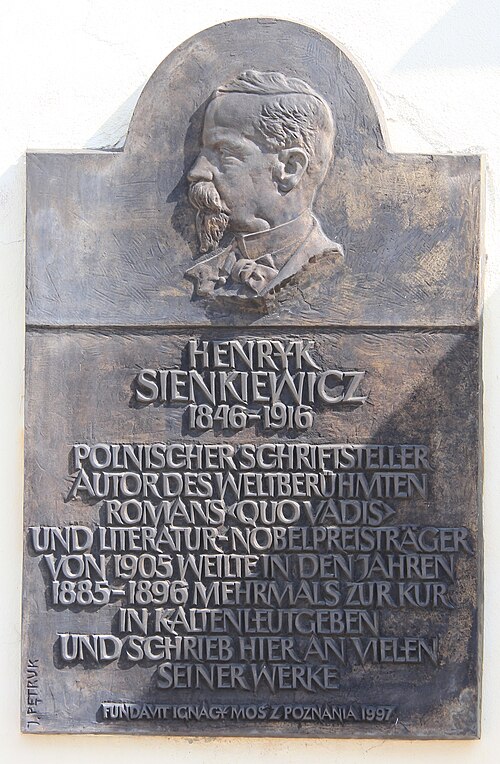 Deutsch: Erinnerungstafel an den Nobelpreisträger Sienkiewicz am Adolfs-Hof in Kaltenleutgeben |