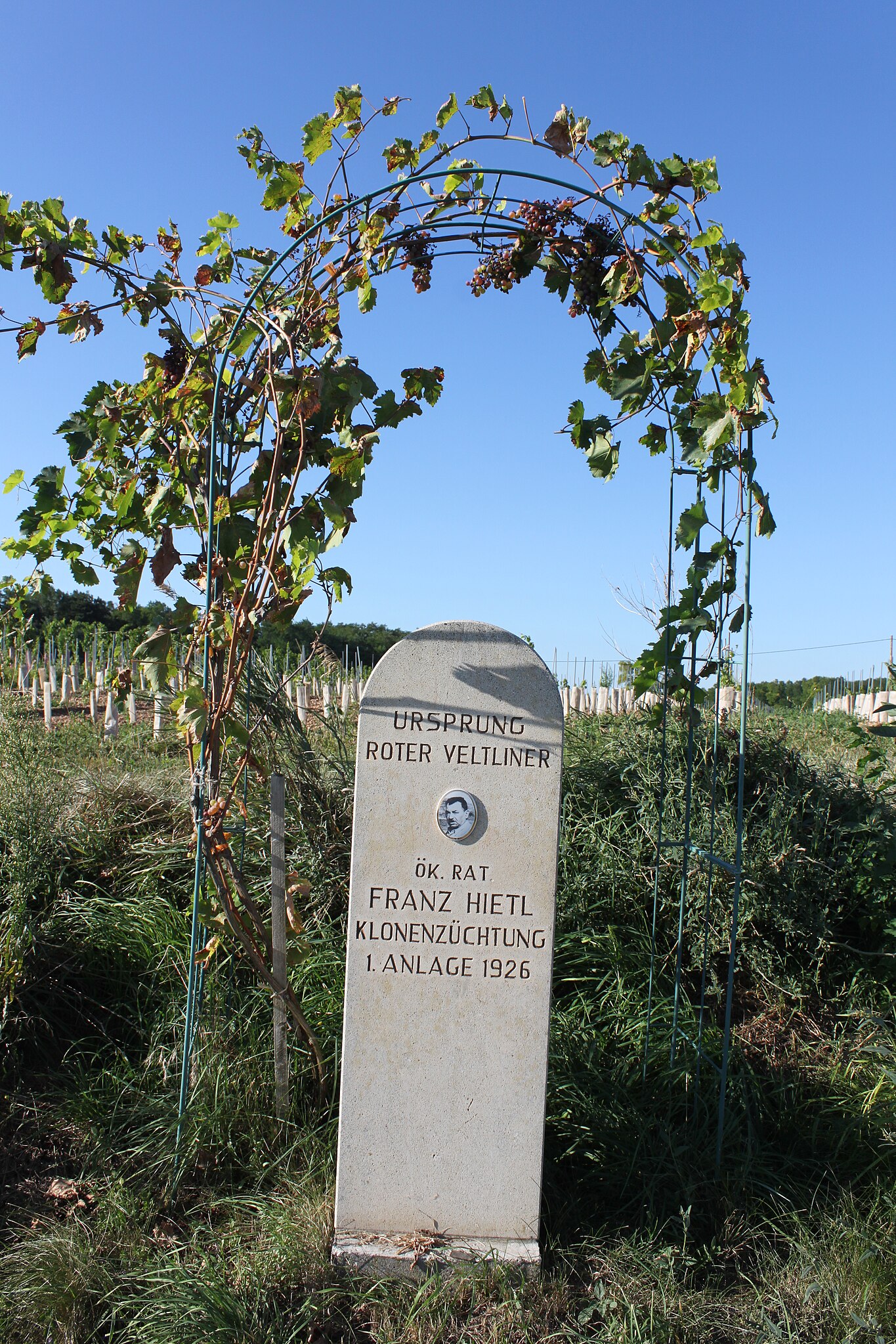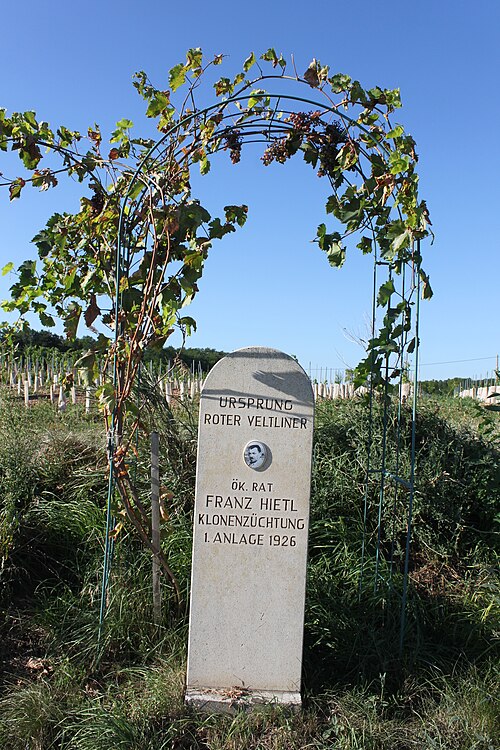 Deutsch: Kellergasse in der KG Engabrunn in Grafenegg, Kellergasse Loner-Broidl, nähe Aussichtswarte Engabrunn, Denkmal für Ök. Rat Franz Hietl, Ursprung Roter Veltliner Klonenzüchtung 1. Anlage 1926