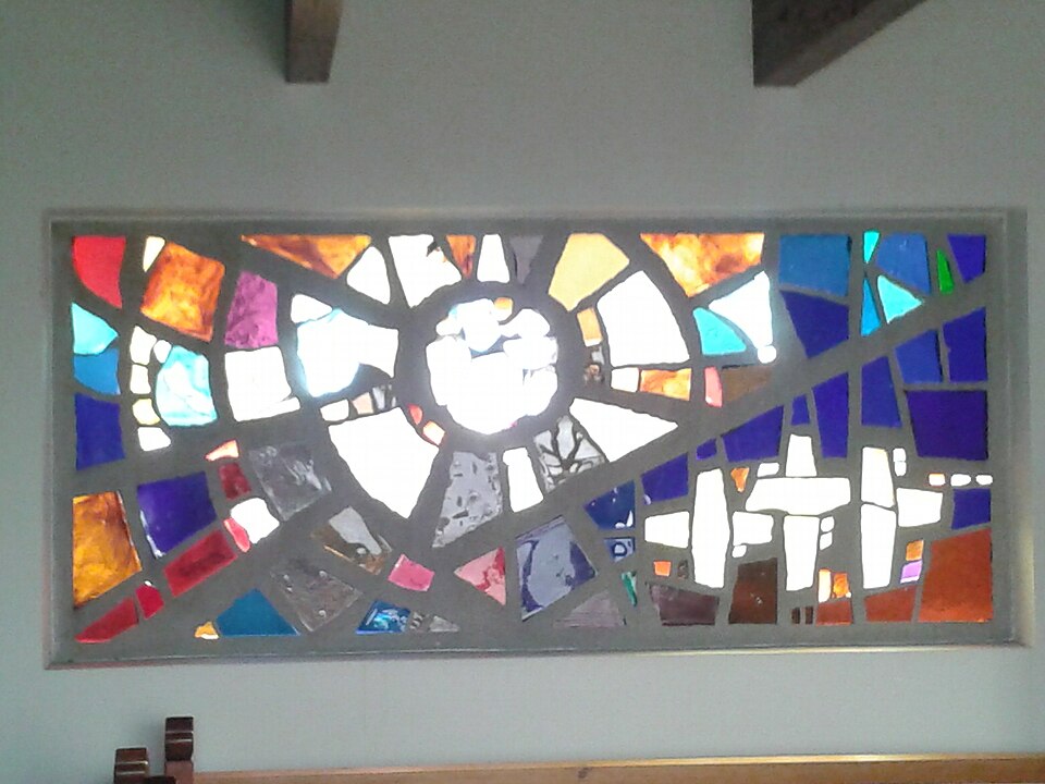 Deutsch: Glasfenster in der Aufbahrungshalle auf dem Friedhof Kennelbach in Vorarlberg