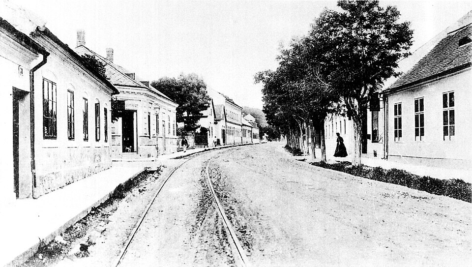 Deutsch: Ketzergasse in Rodaun mit Gleis der Dampftramway Mauer-Mödling (damals war Linksverkehr, Gegenverkehr somit beim Bergabfahren Richtung Mauer). Das Gleis wurde erst 1963 beim Bau der Umkehrschleife in Rodaun auf die rechte Straßenseite verlegt. |